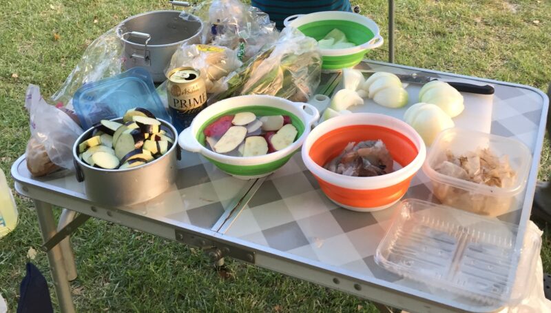 夜ご飯は天ぷらです。材料を適当に切って揚げるだけ。実はとっても簡単で材料も何でもOKなアウトドアにぴったりの料理です。5品家で準備しておいて、残りは道の駅で見つけた美味しそうな野菜をチョイス。揚げて食べて揚げながらまた食べて。酔っ払いながら夜は更けていきました。